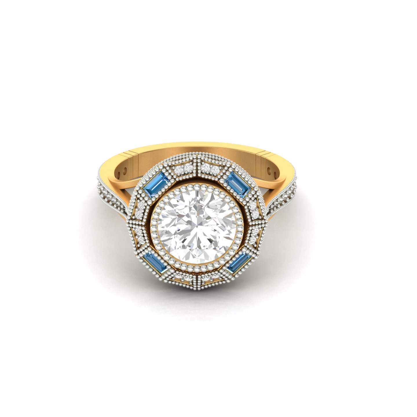 Round Diamond & Marquise Sapphire Wedding Ring